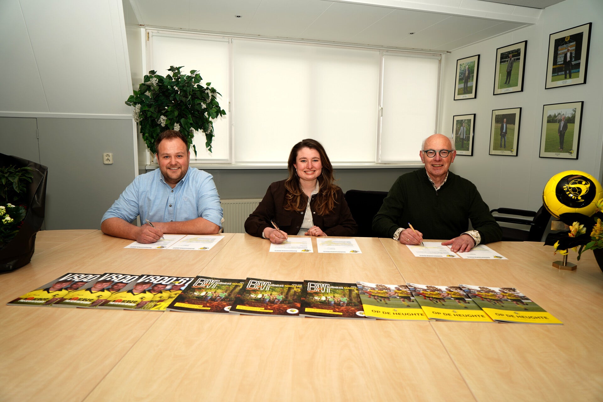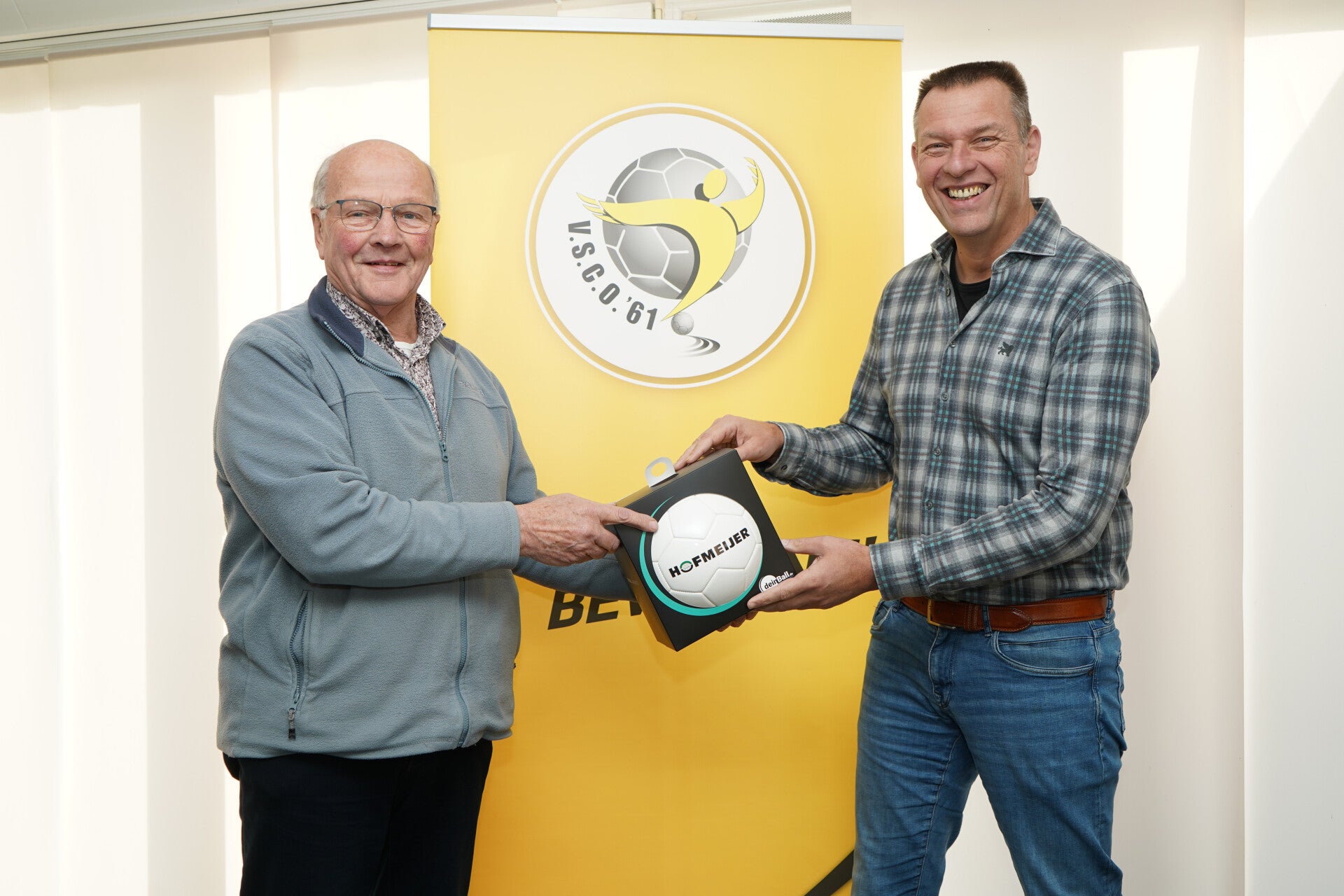 Sportparkbeheerder Jan van de Weg en sponsor-commissielid Lammert Vlieger alsmede Hofmeijer-directeur Jacco Meijerhof zetten recent hun handtekeningen onder de contracten. Dankwoorden werden uitgesproken door de VSCO’61-ers aan Hofmeijer en overhandigden een fraai bloemstuk als blijk van grote waardering voor de lopende en komende samenwerking.