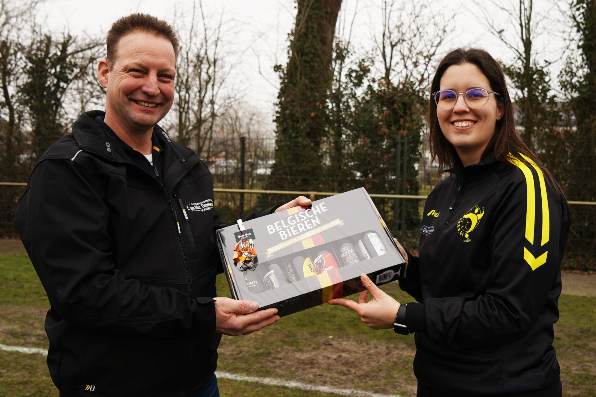 Gelet op de fijne contacten binnen VSCO’61 heeft Erik besloten om, naast zijn wedstrijdsponsorschap, nu ook het vrouwen-1 team te ondersteunen middels de sponsoring van nieuw ontworpen Ziptop sweaters. Afgelopen zaterdagochtend was het moment aangebroken dat Erik op sportpark De Heughte de sweaters officieel overhandigde aan het Vrouwen 1 team. Onder luid gejuich bedankten aanvoerster Demi van der Velde en sponsorcommissielid Lammert Vlieger de kledingsponsor heel hartelijk en overhandigden een fraai bloemstuk als blijk van grote waardering. Het vrouwen-1 team bood vervolgens Erik een leuk Belgisch Bieren Pakket aan als dank voor het sportieve gebaar en de vervulling van hun lang gekoesterde wens.